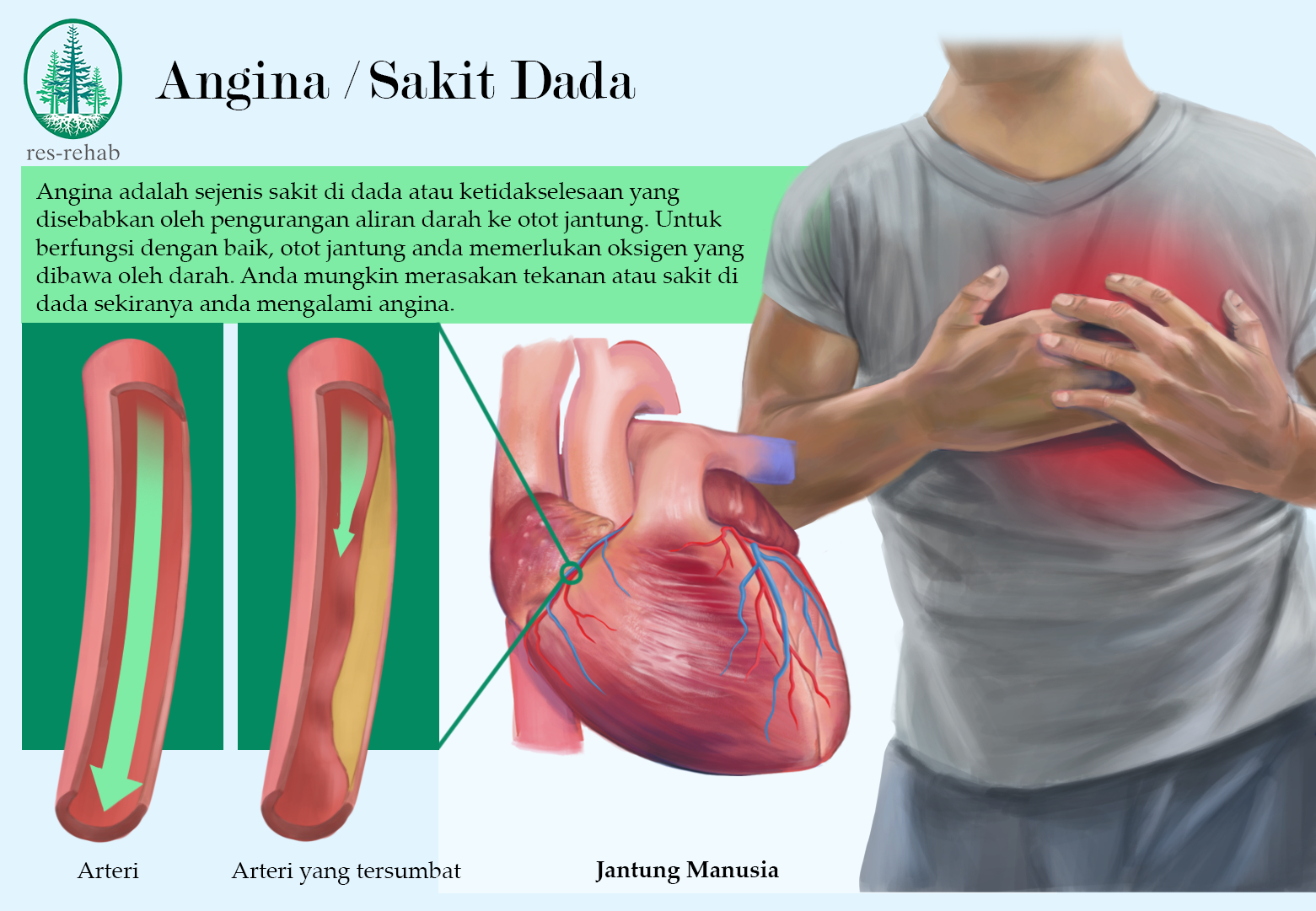 Angina adalah sakit dada atau ketidakselesaan yang disebabkan oleh penurunan aliran darah ke otot jantung. Untuk berfungsi dengan baik, otot jantung anda memerlukan oksigen yang dibawa oleh darah. Anda mungkin merasakan tekanan atau sakit di bahagian dada jika anda mengalami angina. Angina adalah tanda penyakit jantung yang berlaku ketika plak menyekat arteri anda, mencegah darah yang kaya dengan oksigen untuk sampai ke jantung anda. Angina bukanlah keadaan yang mengancam nyawa, tetapi boleh menyerupai gejala serangan jantung. Sekiranya angina berlaku secara tiba-tiba, tidak hilang atau tidak bertindak balas terhadap rehat atau ubat, segera dapatkan rawatan perubatan.