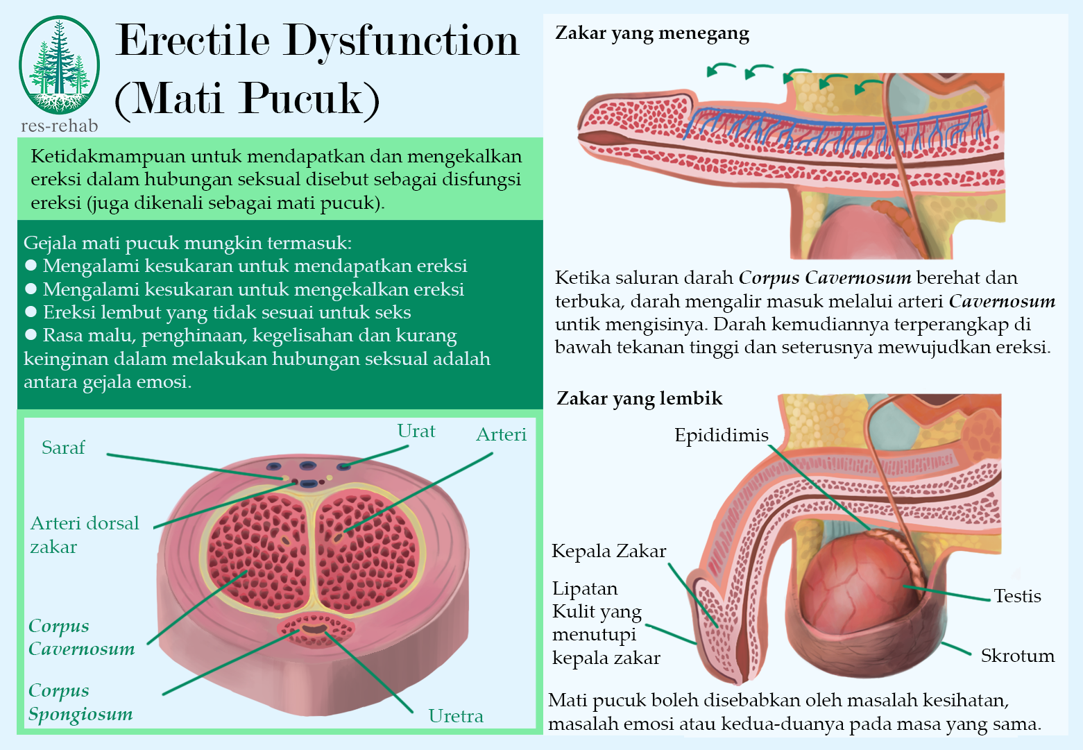 - Mengalami kesukaran dalam mengekalkan ereksi.